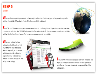 WebSite X5 is an all-in-one solution packed with tools to create and publish professional websites, online shops and blogs in just 5 easy steps. WebSite X5 is designed to work like a wizard, visually guiding users through the steps to create and publish a complete, functional and professional website. No programming skills required! WebSite X5’s templates design the page - all users need to do is drag and drop objects to create pages. With a selection of website objects to choose from including videos (with support for YouTube), image galleries, integrated e-commerce with partners such as PayPal, podcast and RSS content, plus video and Shockwave Flash animations - creating a professional website could not be easier.